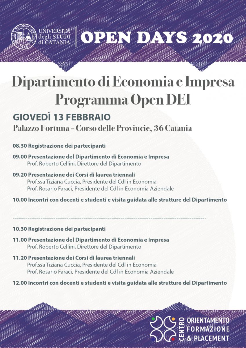 Nei giorni 13 e il 14 febbraio 2020 si terrà, presso il nostro Dipartimento, l' Open Day, dedicato alla presentazione dei corsi di studio del nostro Dipartimento agli studenti delle scuole secondarie.