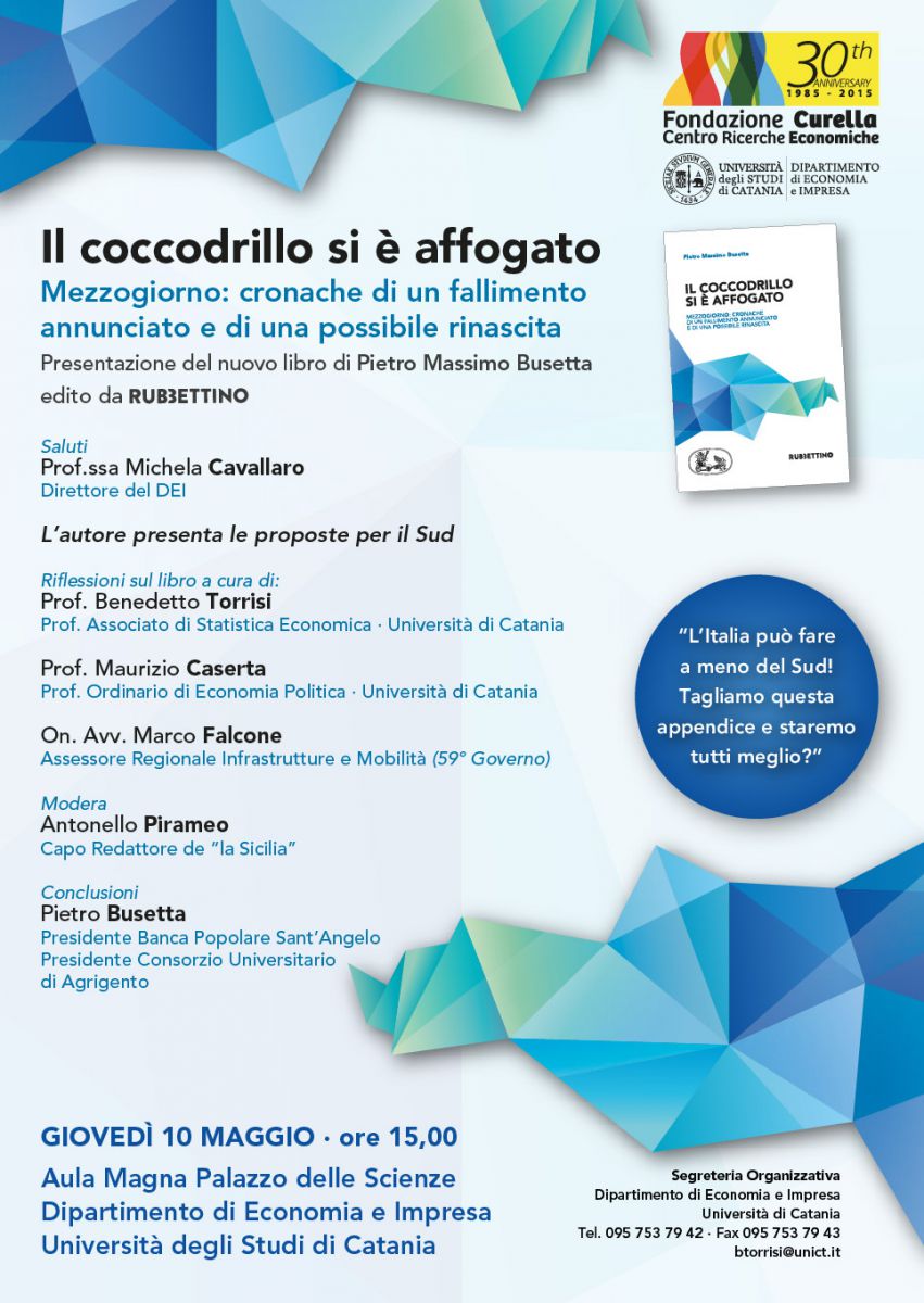 Giovedì 10 maggio alle ore 15, presso l'Aula Magna del Palazzo delle Scienze, si terrà la presentazione del libro di Pietro Massimo Busetta: "Il Coccodrillo si è affogato. Cronache di un fallimento annunciato e di una possibile rinascita".