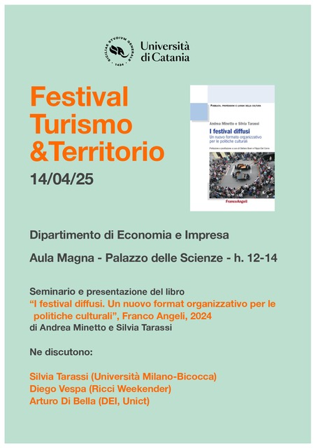 Lunedì 14 aprile in aula magna di Palazzo delle Scienze dalle 12 alle 14 si terrà il seminario dal titolo "Festival, turismo e territorio”.