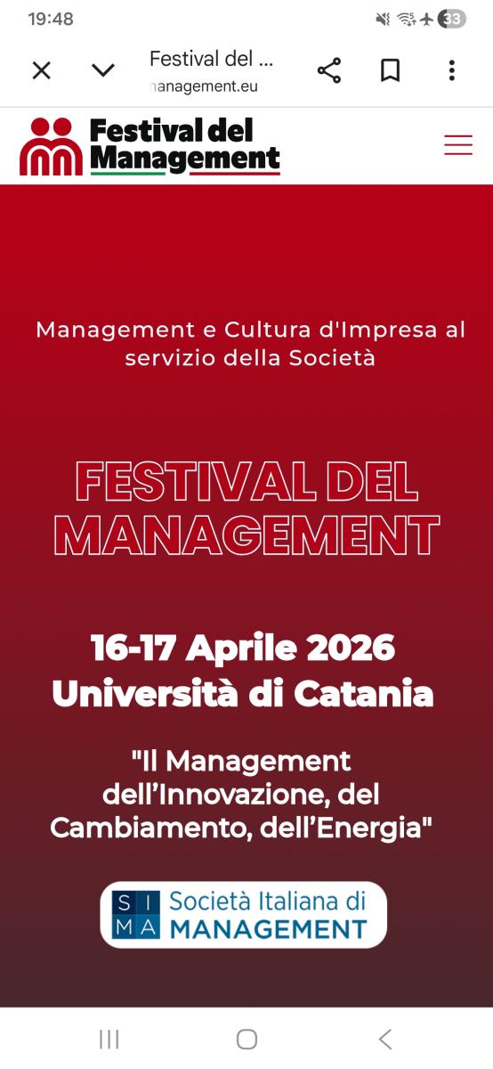 Si informano gli studenti iscritti ai corsi di studio del Dipartimento che il 16 e 17 aprile si terrà il "Festival del management - il management dell'innovazione, del cambiamento, dell'energia" promosso dai docenti Carmela Elita Schillaci e Agata Matarazzo.
